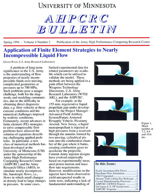 Selected Articles:   Flows with Moving Mechanical Components in Liquid-Propellant Guns   Aerodynamics of Ram-Air Parachutes   AHPCRC/Army Participation at 2nd Japan-US Flow Simulation Symposium |