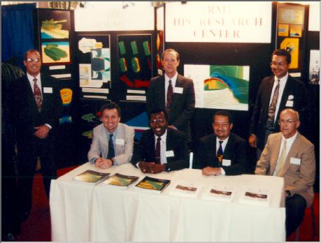 AHPCRC Bulletin: Summer 1995 - Volume 5 Number 3Basic Research in the National Defense: University Contributions to PreparednessPaul Muzio (AHPCRC-MSCI)The Army High Performance Computing Research Center participated in a reception/exhibit whose theme was Basic Research in the National Defense: University Contributions of Preparedness for members of Congress and Congressional staffers. The purpose of the reception/exhibit was to inform members of Congress of the importance of university basic research to US economic growth and defense research and technology. The reception/exhibit was organized by the Association of American Universities in conjunction with the Congressional Institute for the Future (CIF). The CIF is a nonprofit, 501(c)(3) educational organization that advances research and education about emerging issues. The keynote address was given by Anita Jones, Director, Defense Research and Engineering.The AHPCRC display at the reception/exhibit included demonstrations of the results of Center research projects in flow simulation, manufacturing technology and materials science, and environmental modeling. Richard Chait, Director, Research and Laboratory Management, and Walter Sturek, Army Research Laboratory, represented the Army at the AHPCRC booth. Tayfun Tezduyar, AHPCRC Director, Yaw Yeboah, Director, Research Center-Clark Atlanta University, and Abdul Mohamed, Dean, School of Science and Technology, Jackson State University, represented the AHPCRC as well as their respective institutions. In addition to the AHPCRC partner universities, demonstrations and exhibits were also provided by seventeen other leading research universities. The reception/exhibit was held on Monday, May 22, 1995, from 4:00 PM to 7:00 PM in the Cannon House Caucus Room. |