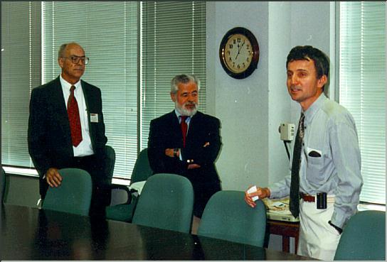 Ettore Infante Honored for his Support of the AHPCRCEttore Infante, Dean of the UM Institute of Technology (IT) in 1989 when the AHPCRC was originally established, played a key role in bringing the Center to the UM. Largely due to his vision, encouragement and support, a team of faculty researchers came together for the purpose of exploring the use of high performance computing (HPC) for solving Army relevant problems, to have technology exchange with the Army through collaborations with Army scientists, and to train future generations in the use of HPC. Even after Infante assumed the role of Senior Vice President for Academic Affairs, he continued to be very supportive of the Center and its mission.Infante recently resigned as Senior Vice President for Academic Affairs, and plans to return to the School of Mathematics where he will resume a career of teaching and research. In August, a luncheon was held at the AHPCRC in honor of Infante's many years of support of the Center. We have greatly appreciated and depended upon his assistance and guidance on the many and varied issues of the past seven years. ![]() Walter Sturek (ARL), Ettore Infante (UM), Tayfun Tezduyar (AHPCRC-UM) The luncheon was attended by individuals involved with the Center form its inception, as well as those newer to the project. Included in the group of Army personnel present were Jagdish Chandra (ARO), the original Center program officer, and Walter Sturek (ARL), who currently fills this role, as well as William Mermagen, the ARL Directorate Executive, and Charles Nietubicz, the ARL Chief of the HPC Division. From the Minnesota Supercomputer Center, Inc. were John Sell, President, Paul Muzio, Vice President for Government Programs and AHPCRC Executive Director for Infrastructure, Craig Norman, Vice President for Administration and General Council, and Robert Williams, Executive Vice President. From the AHPCRC academic partner universities, Tepper Gill (HU) and Olugbemiga Olatidoye ((CAU) attended, and from the University of Minnesota, Phillips Shively, Provost for Arts, Sciences and Engineering, Ted Davis, Dean of the Institute of Technology, Tayfun Tezduyar and Anita Anderson, AHPCRC Director and Executive Officer respectively. Also in attendance was Infante's wife, Trudi Miller, to whom we owe a dept of gratitude for her willingness to share so much of her husband's time with the Center and the UM. Memories, remarks and best wishes were shared by all. |