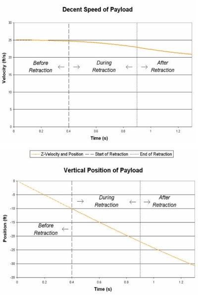 Figure 2: Payload descent speed and vertical position for the retraction. |