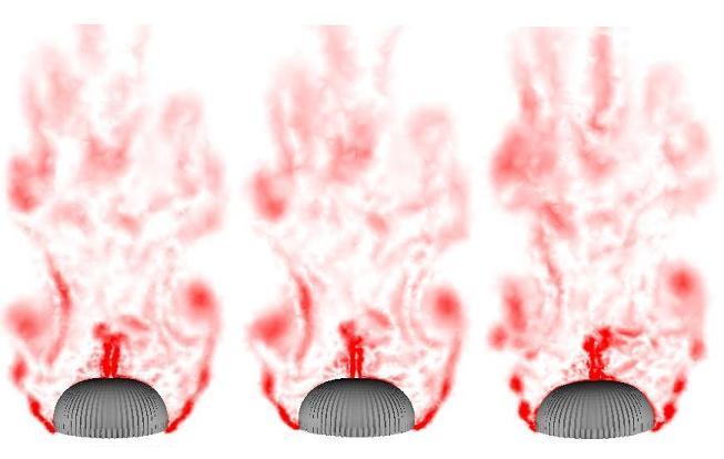 Figure 1. Close-up of PMAs at four different times during the simulation.