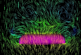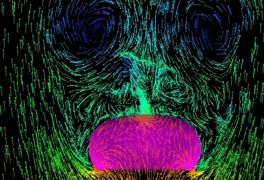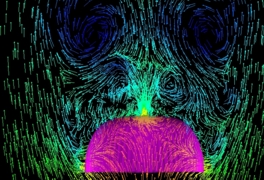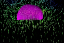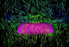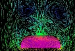 For more details on this simulation, see [8-9]. References1. T.E. Tezduyar, "Stabilized Finite Element Formulations for Incompressible Flow Computations", Advances in Applied Mechanics, 28 (1992) 1-44. 2. T.E. Tezduyar, M. Behr and J. Liou, "A New Strategy for Finite Element Computations Involving Moving Boundaries and Interfaces -- The Deforming-Spatial-Domain/Space-Time Procedure: I. The Concept and the Preliminary Numerical Tests", Computer Methods in Applied Mechanics and Engineering, 94 (1992) 339-351. 3. T.E. Tezduyar, M. Behr, S. Mittal and J. Liou, "A New Strategy for Finite Element Computations Involving Moving Boundaries and Interfaces -- The Deforming-Spatial-Domain/Space-Time Procedure: II. Computation of Free-surface Flows, Two-liquid Flows, and Flows with Drifting Cylinders", Computer Methods in Applied Mechanics and Engineering, 94 (1992) 353-371. 4. T.E. Tezduyar, "Computation of Moving Boundaries and Interfaces and Stabilization Parameters", International Journal for Numerical Methods in Fluids, 43 (2003) 555-575. 5. T.E. Tezduyar, M. Behr, S. Mittal and A.A. Johnson, "Computation of Unsteady Incompressible Flows with the Stabilized Finite Element Methods--Space-Time Formulations, Iterative Strategies and Massively Parallel Implementations", New Methods in Transient Analysis, PVP-Vol. 246/ AMD-Vol. 143, ASME, New York (1992) 7-24. 6. T.E. Tezduyar, S. Sathe, R. Keedy and K. Stein, "Space-Time Techniques for Finite Element Computation of Flows with Moving Boundaries and Interfaces", Proceedings of the III International Congress on Numerical Methods in Engineering and Applied Sciences, Monterrey, Mexico, CD-ROM (2004). 7. T.E. Tezduyar, S. Sathe, R. Keedy and K. Stein, "Space-Time Finite Element Techniques for Computation of Fluid-Structure Interactions", Computer Methods in Applied Mechanics and Engineering, 195 (2006) 2002-2027. 8. T.E. Tezduyar, S. Sathe, M. Senga, L. Aureli, K. Stein and B. Griffin, "Finite Element Modeling of Fluid-Structure Interactions with Space-Time and Advanced Mesh Update Techniques", Proceedings of the 10th International Conference on Numerical Methods in Continuum Mechanics, Zilina, Slovakia, CD-ROM (2005). 9. T.E. Tezduyar, S. Sathe, K. Stein and L. Aureli, "Modeling of Fluid-Structure Interactions with the Space-Time Techniques", Fluid-Structure Interaction (eds. M. Schafer, and H-J. Bungartz), Lecture Notes on Computational Science and Engineering, Springer, in press (2006). |