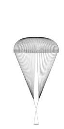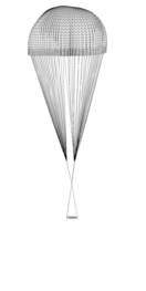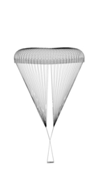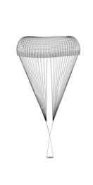 Disreefing of a G-12 ParachuteHere we focus on computer modeling of the fluid-structure interactions (FSI) involved in disreefing of a G-12 parachute. The parachute is initially deployed in a reefed configuration and with a lower drag area so that higher descent speeds are achieved during most of its descent. Prior to landing, it is disreefed to increase the drag area to its full level and thus reduce the landing speed to its normal value. We model the aerodynamic and FSI response of the parachute to the disreefing. The simulation starts with a reefed parachute with a diameter 25% smaller than the diameter of a fully-inflated parachute. The simulation is carried out in a parallel computing environment with the parallel FSI solver written by the T*AFSM. The underlying methods of the FSI solver were introduced by the T*AFSM over the years. These methods include: the Deforming-Spatial-Domain/Stabilized Space-Time (DSD/SST) formulation [1-4], an automatic mesh update technique [5], and the quasi-direct fluid-structure coupling method [6-7].