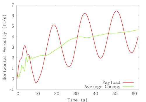 | Fig. 5. Horizontal velocity for the drifting parachute (side wind = 12.5 ft/s). For details, see [8, 9]. |