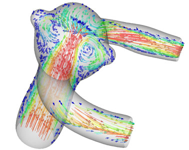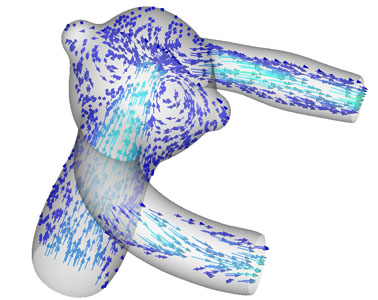 | Fig. 2. Blood-flow patterns at an instant during the cardiac cycle. For details, see [9]. |
